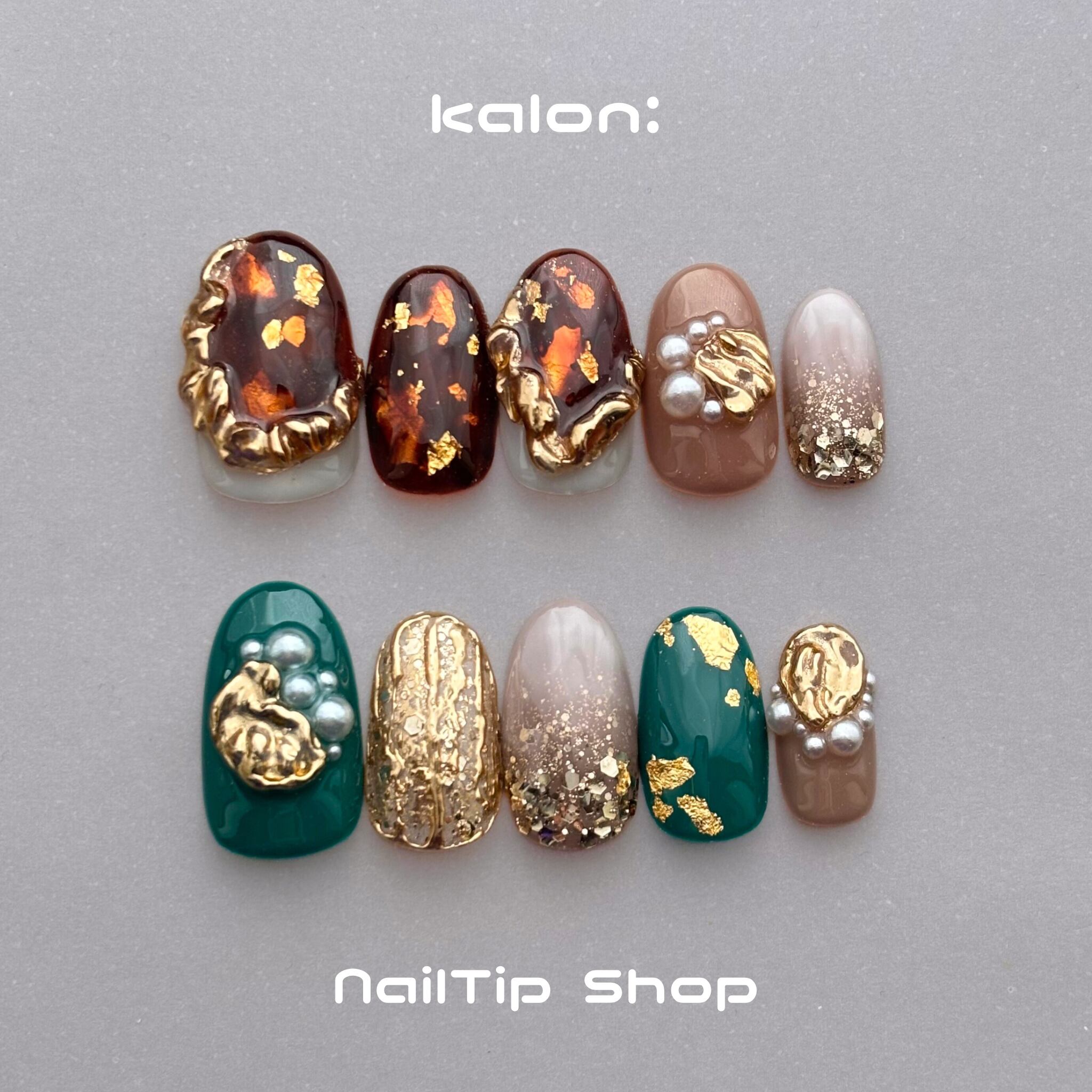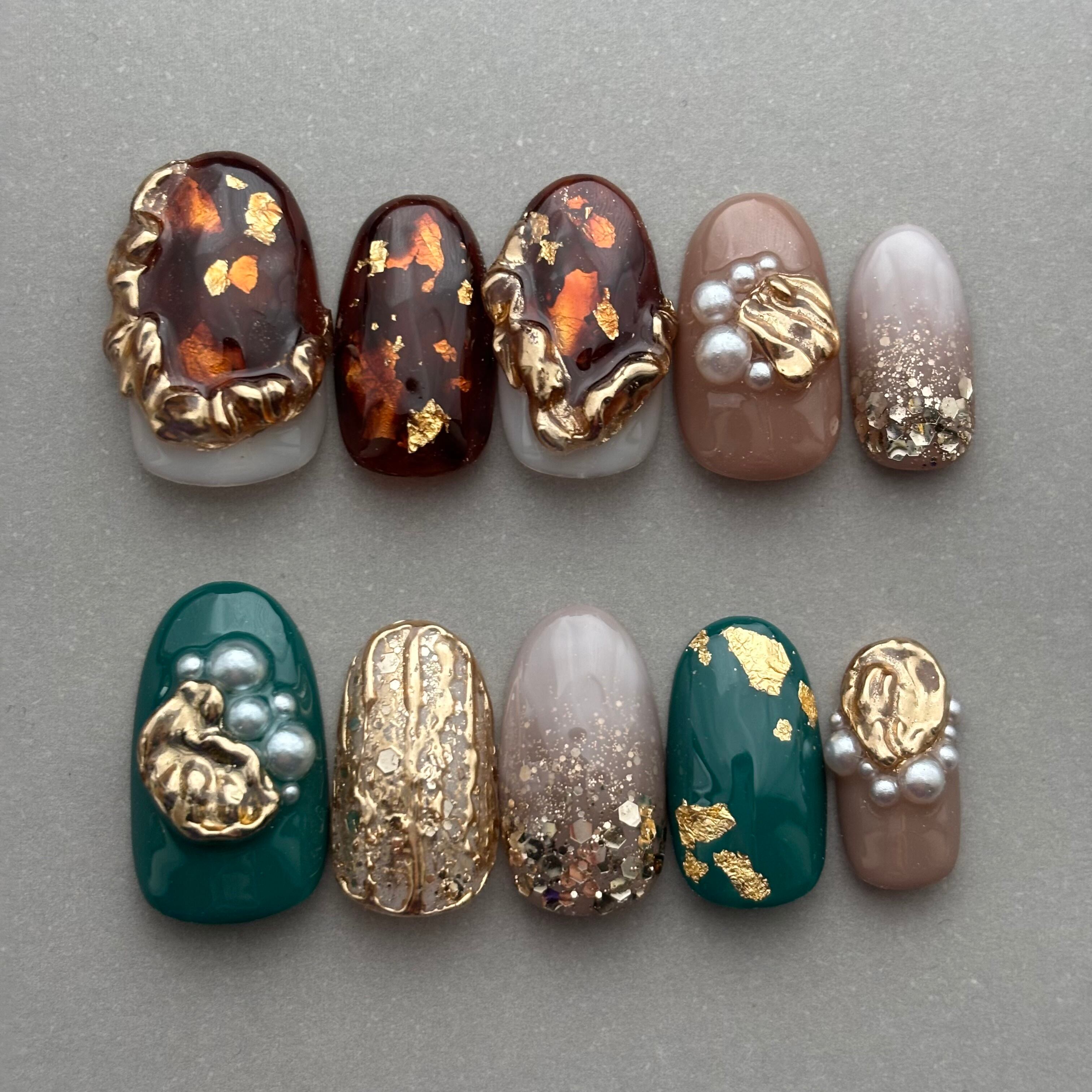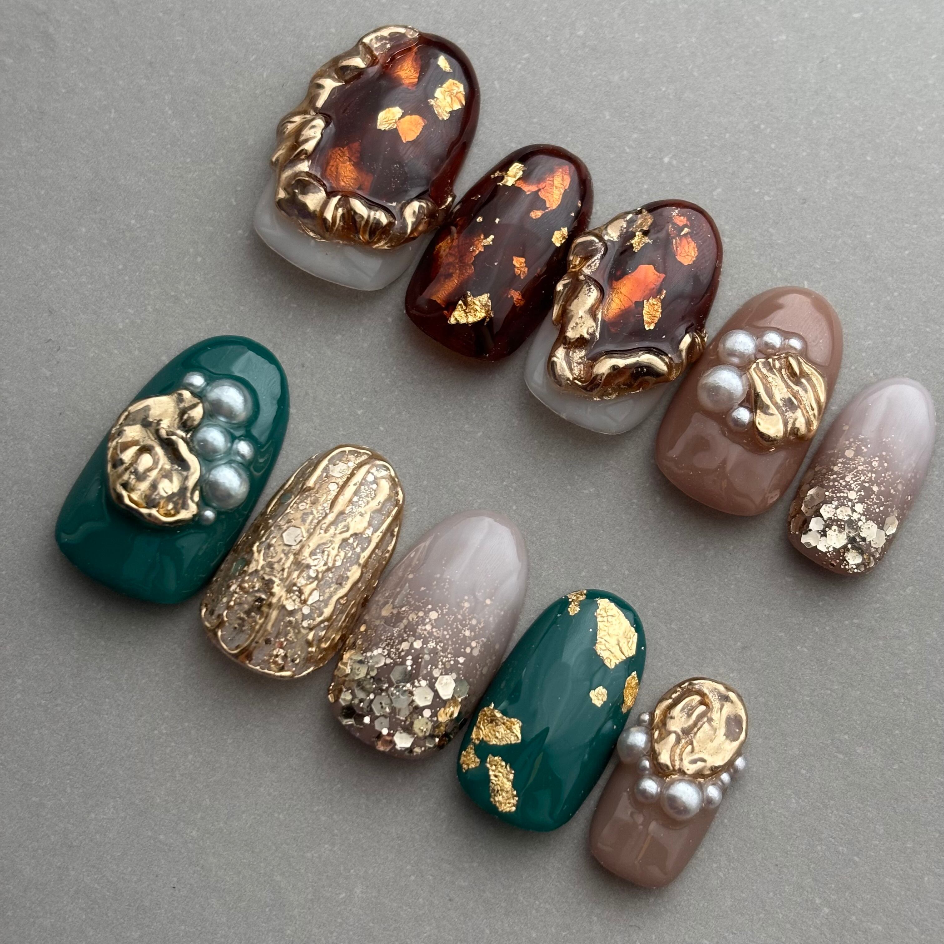 ネイルチップ/ニュアンスネイル べっ甲 ミラー ラメグラデーション グリーン