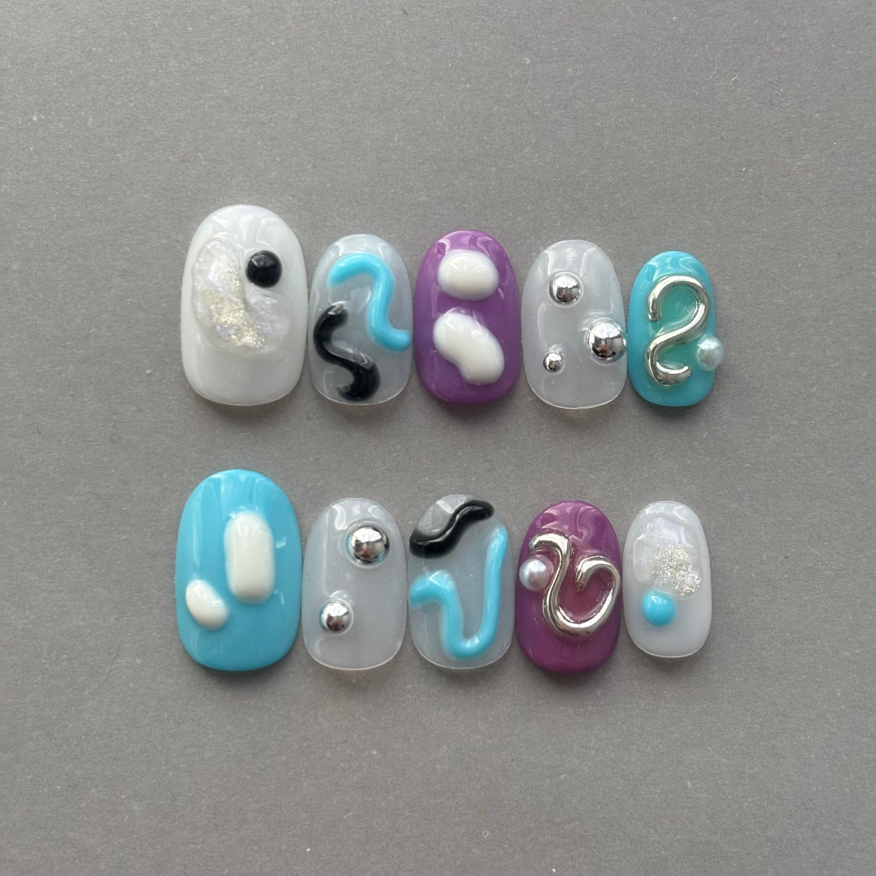 ネイルチップ/個性派ネイル うねうね ぷっくり 水色 パープル ホワイト クリア
