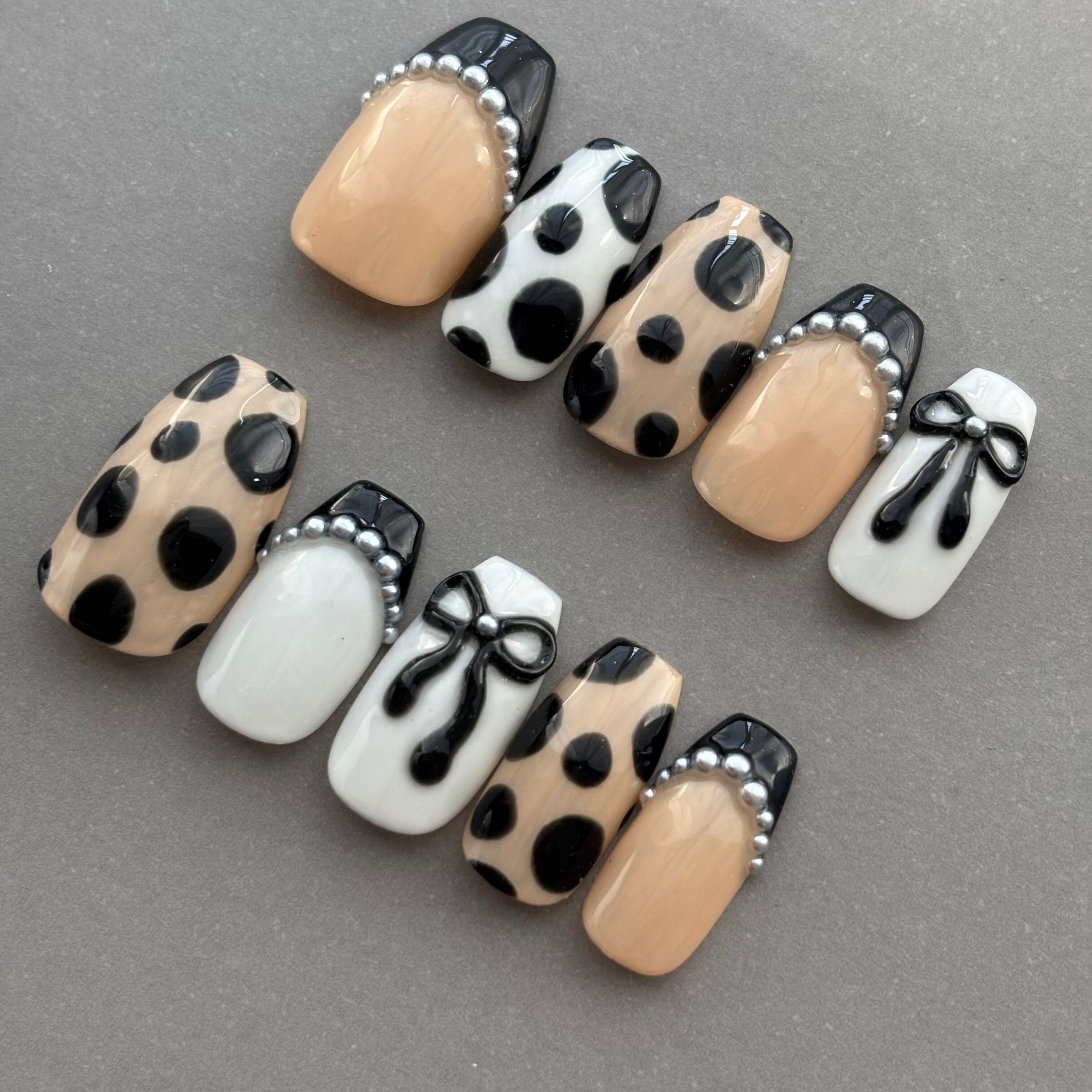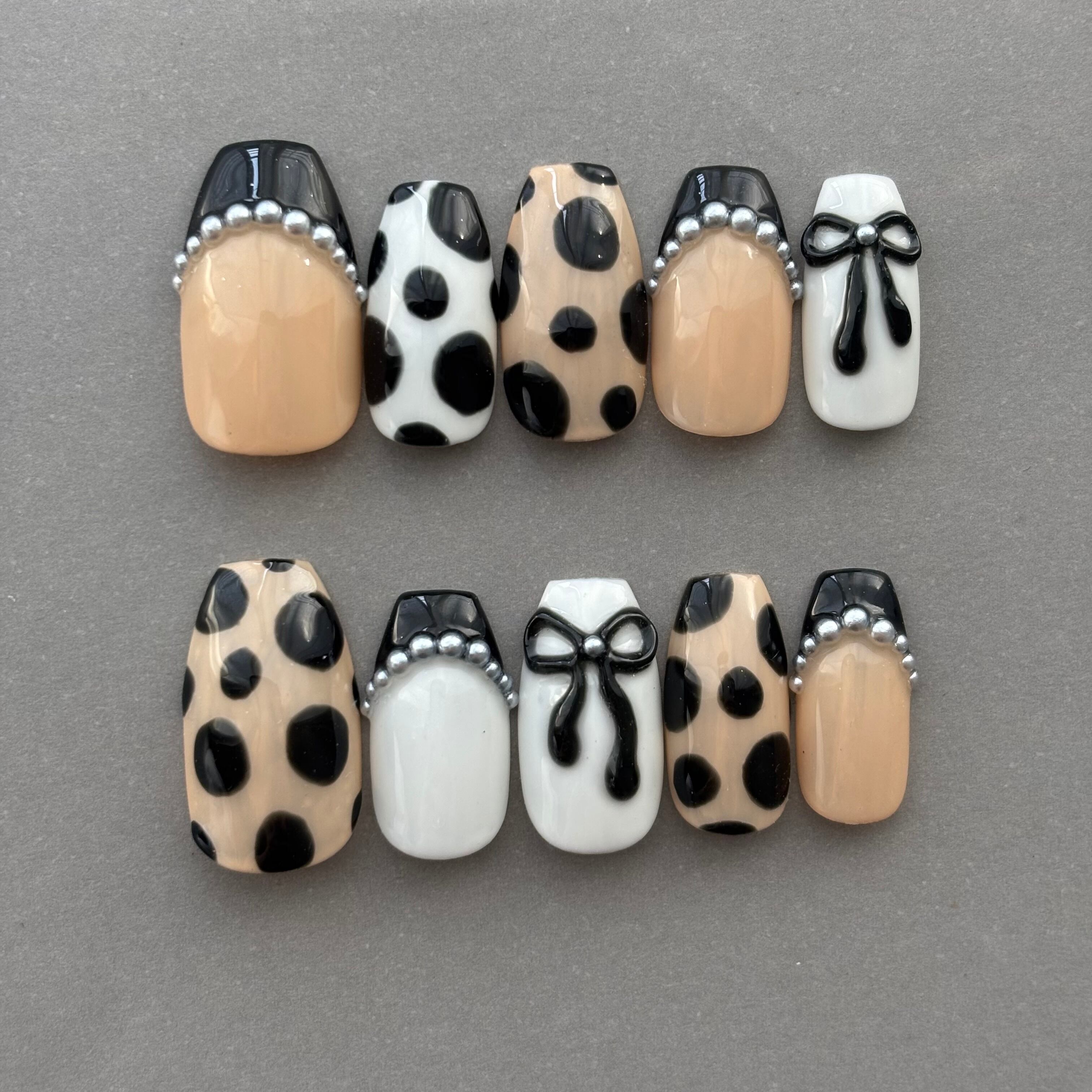 ネイルチップ/リボンネイル 水玉 ドット フレンチ ぷっくり パール