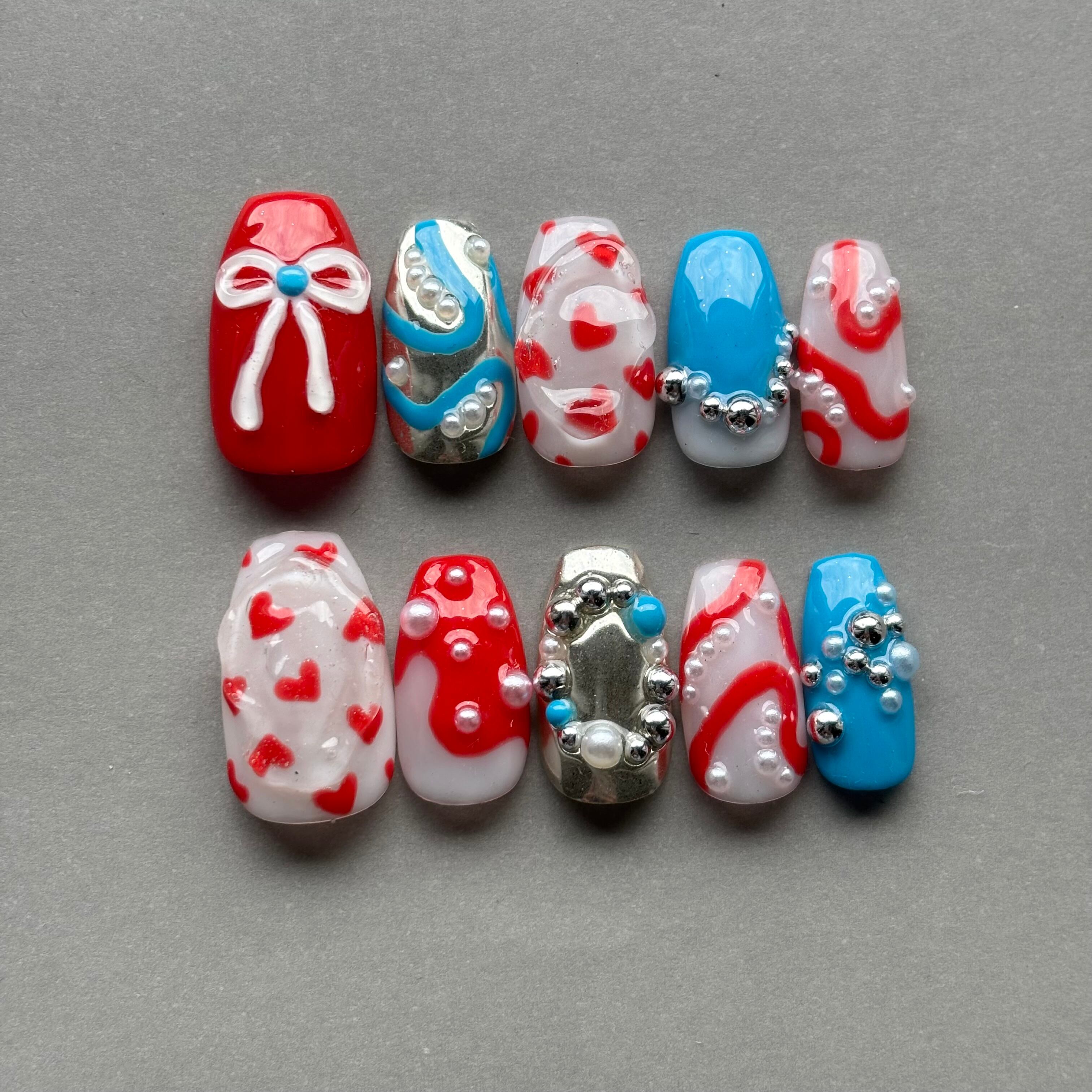 ネイルチップ/個性派ネイル ハート リボン うねうね ぷっくり つぶつぶ