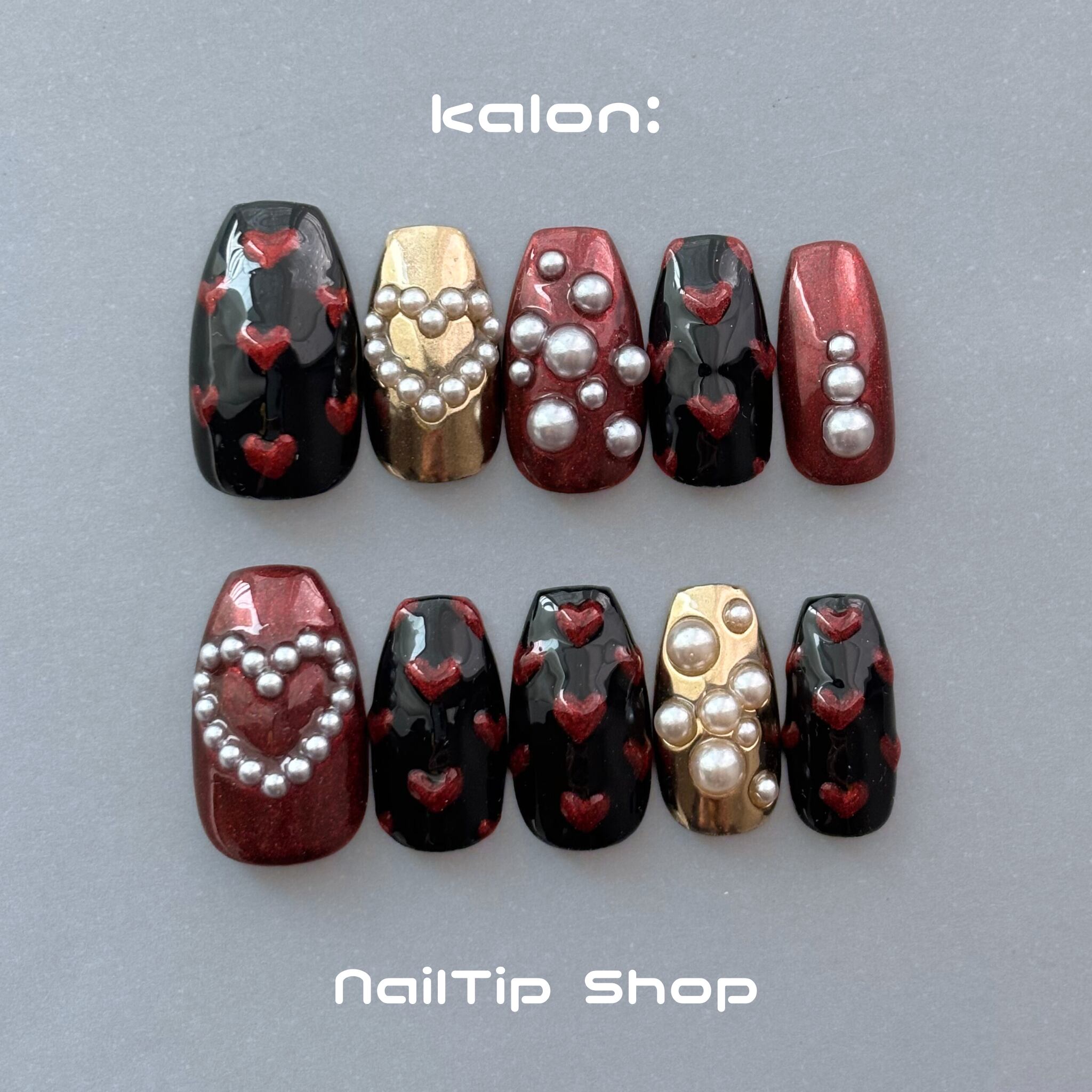 ネイルチップ/ハート パール ラメ ぷっくり ブラック レッド ゴールド 個性派