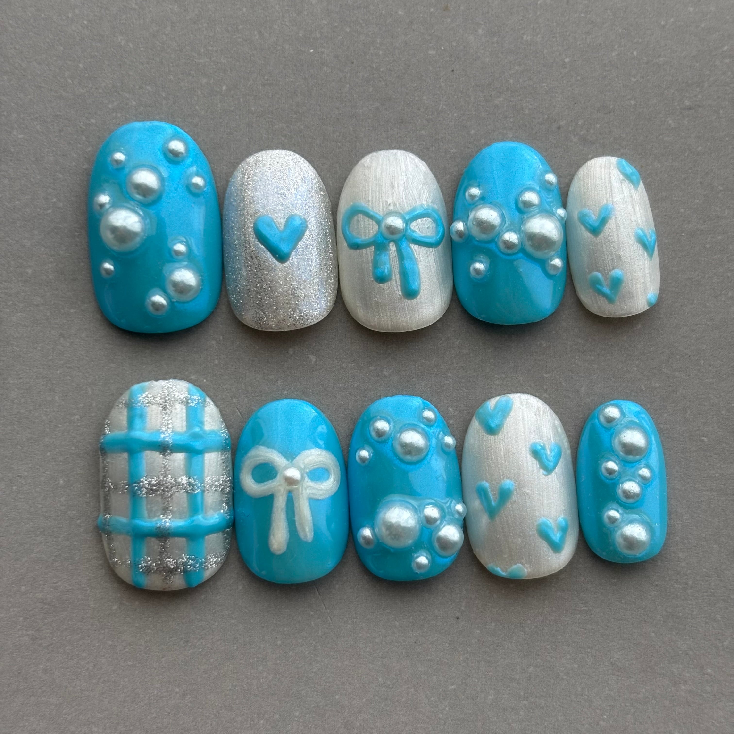 ネイルチップ/ニュアンス ハート リボン パール チェック 推し活