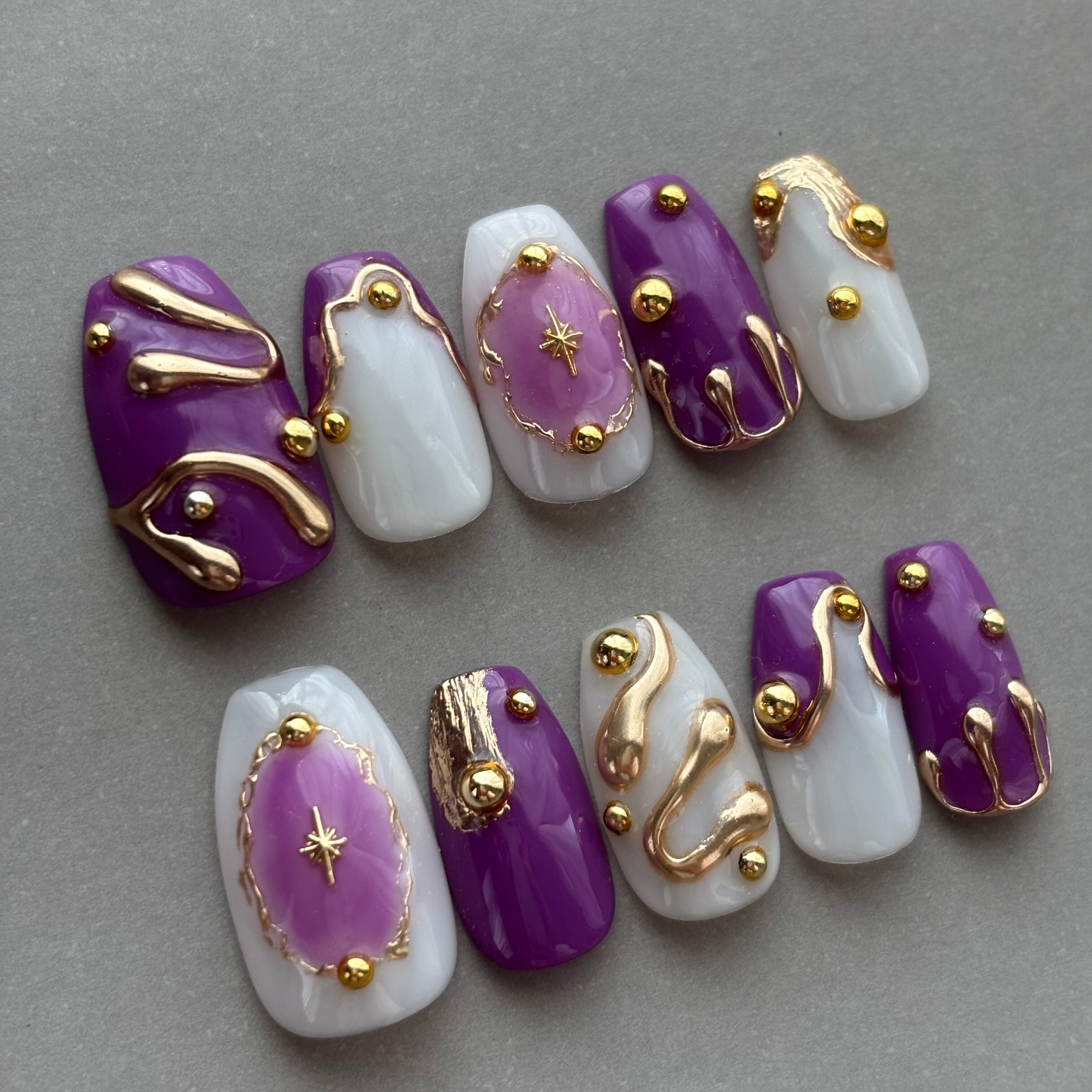 ネイルチップ/個性派 ニュアンス 海外 パープル ゴールド ぷっくり