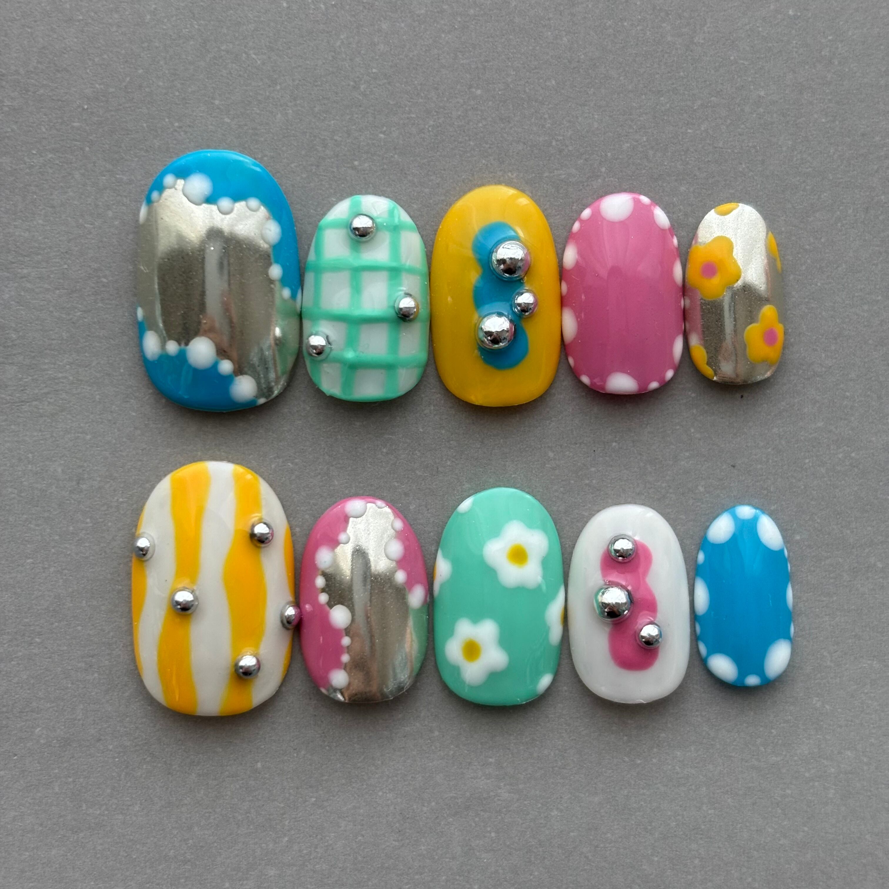 ネイルチップ/個性派 カラフル フラワー 水玉 チェック うねうね
