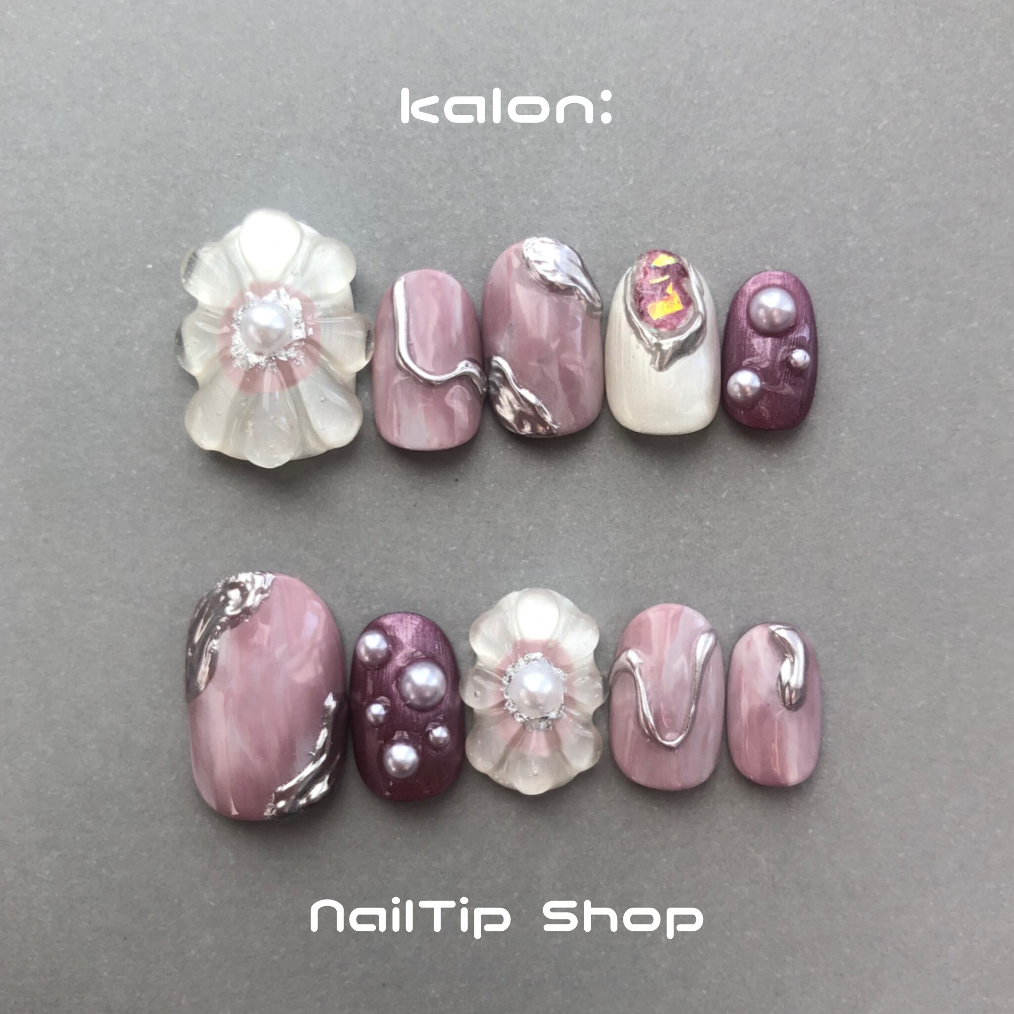 【サイズオーダー受付中】ネイルチップ / ピンク もやもや うねうね フラワー