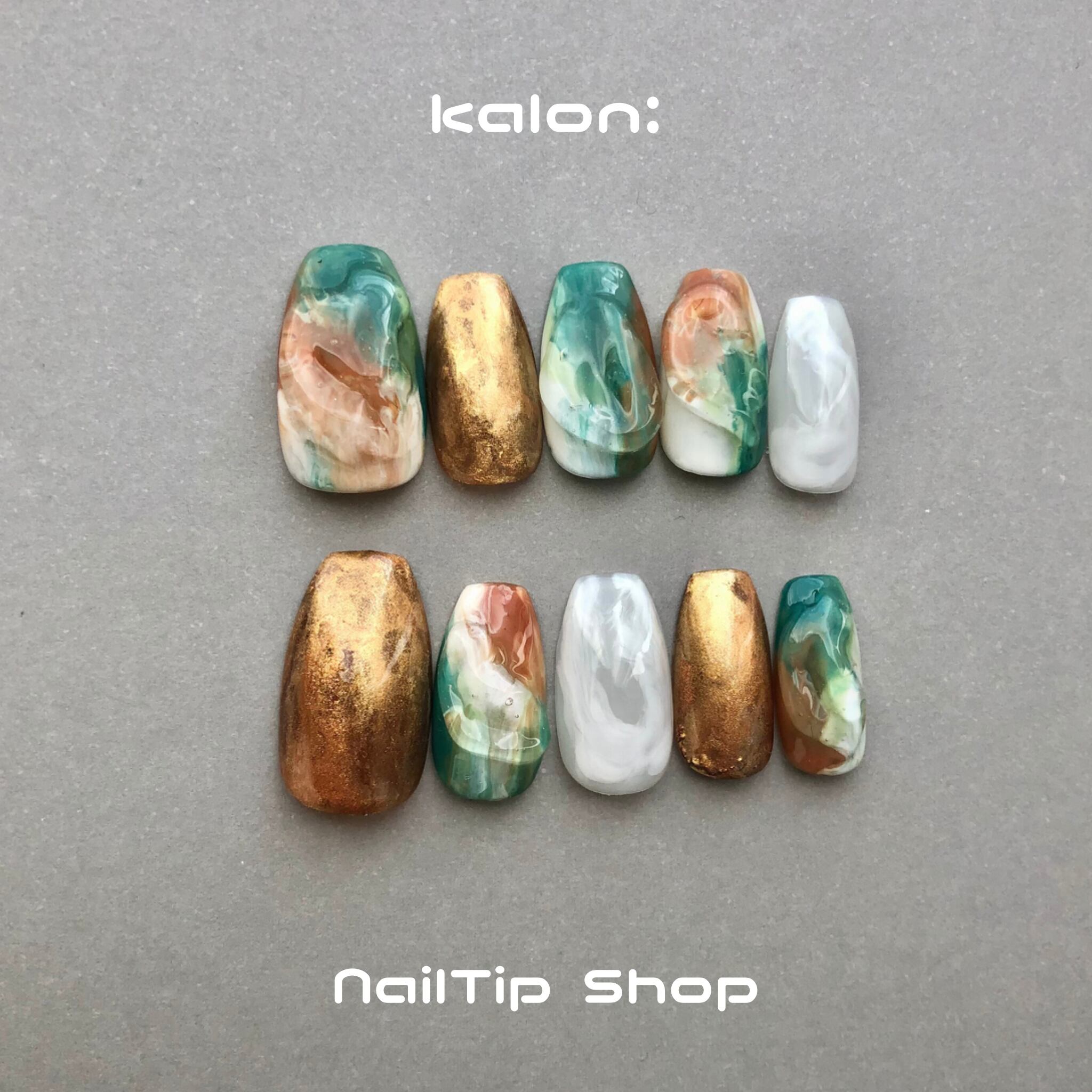 【サイズオーダー受付中】ネイルチップ / グリーン×ブラウン×ホワイト もやもや ニュアンス