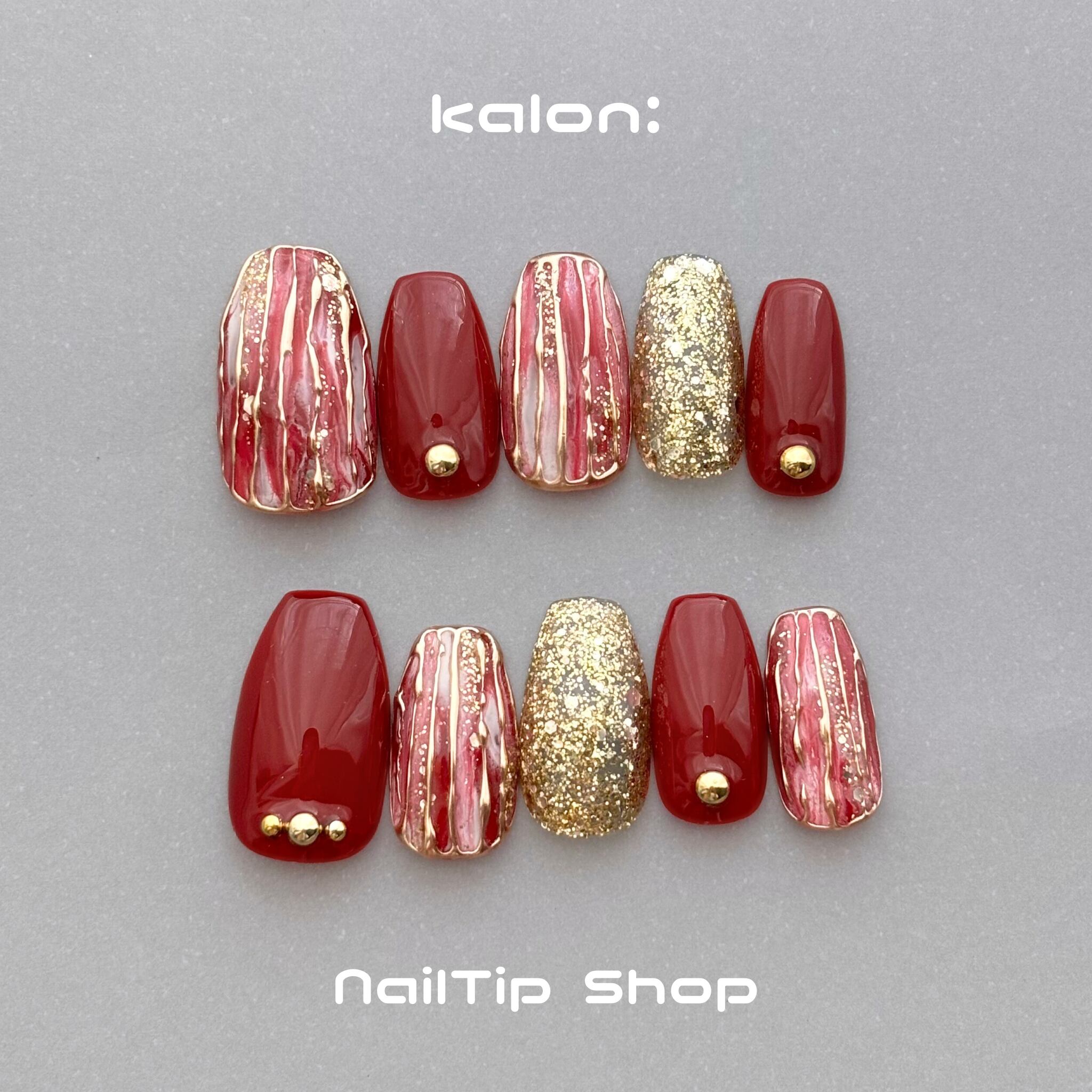 ネイルチップ / ニュアンス 大人ネイル レッド ボルドー ゴールド ストライプ