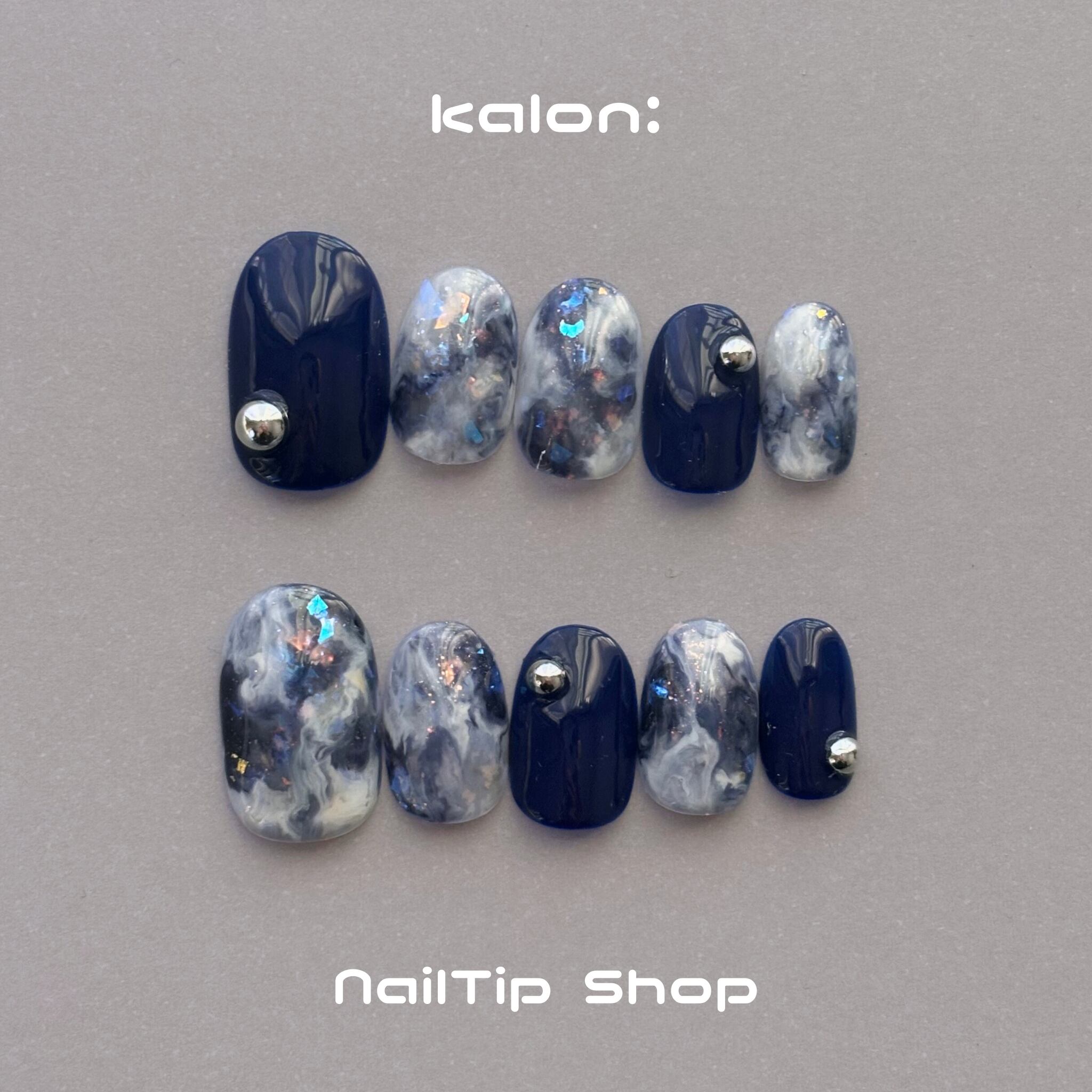 ネイルチップ / ニュアンス ネイビー ブルー ホワイト マーブル ギャラクシー キラキラ