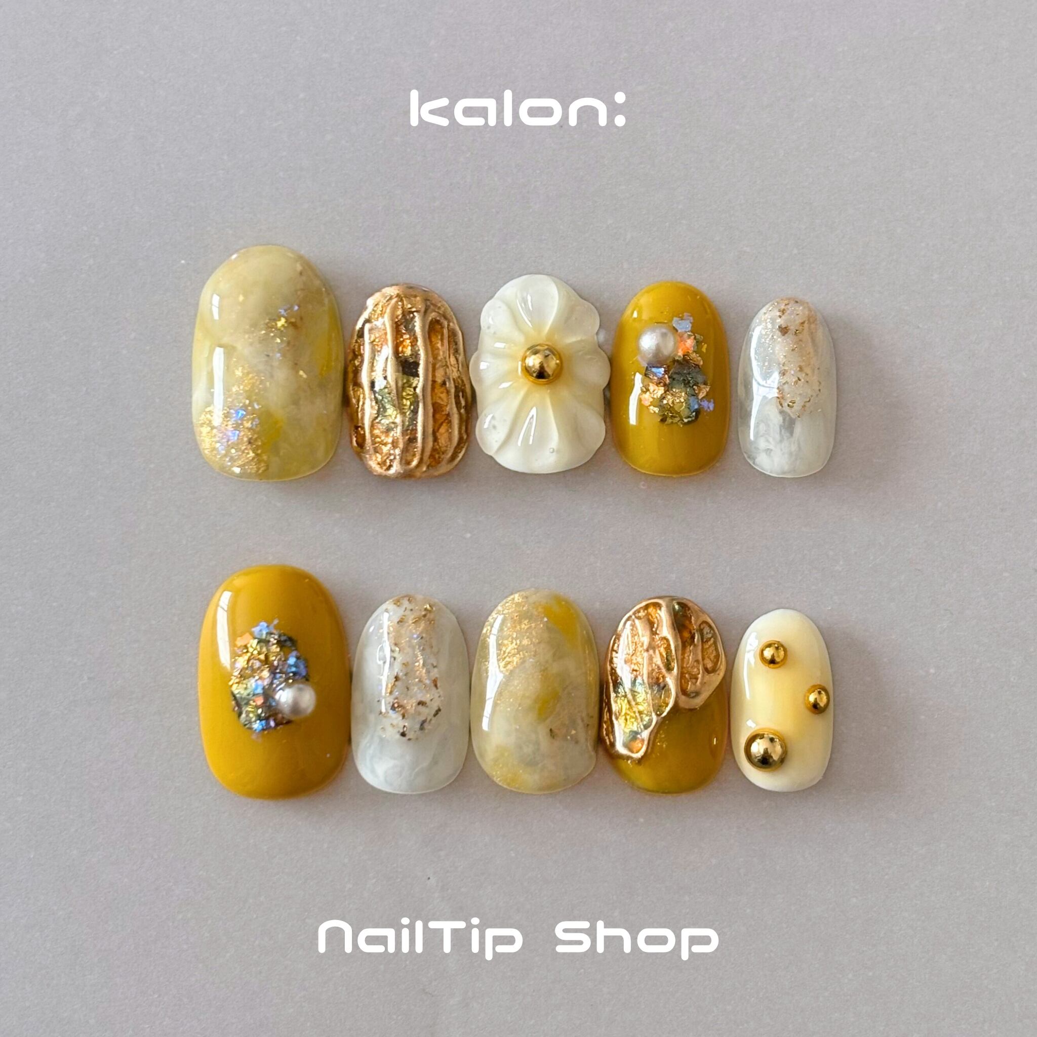 ネイルチップ/ ニュアンスネイル イエロー 黄色 ゴールド フラワー